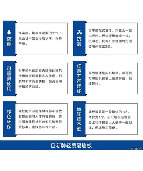 巨新復合實芯墻板質量輕,對于建筑物基礎結構設計,可以優(yōu)化建筑物結構